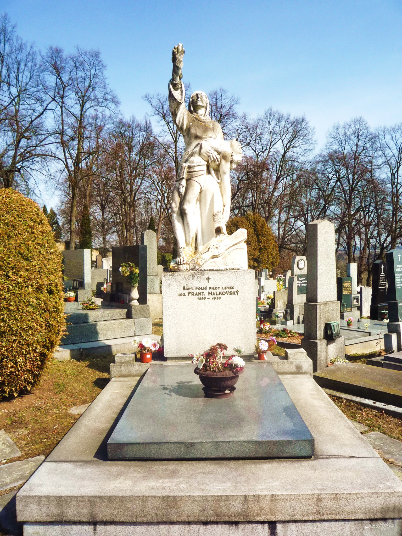 Hrob Františka Malkovského je na benešovském hřbitově nepřehlédnutelný.