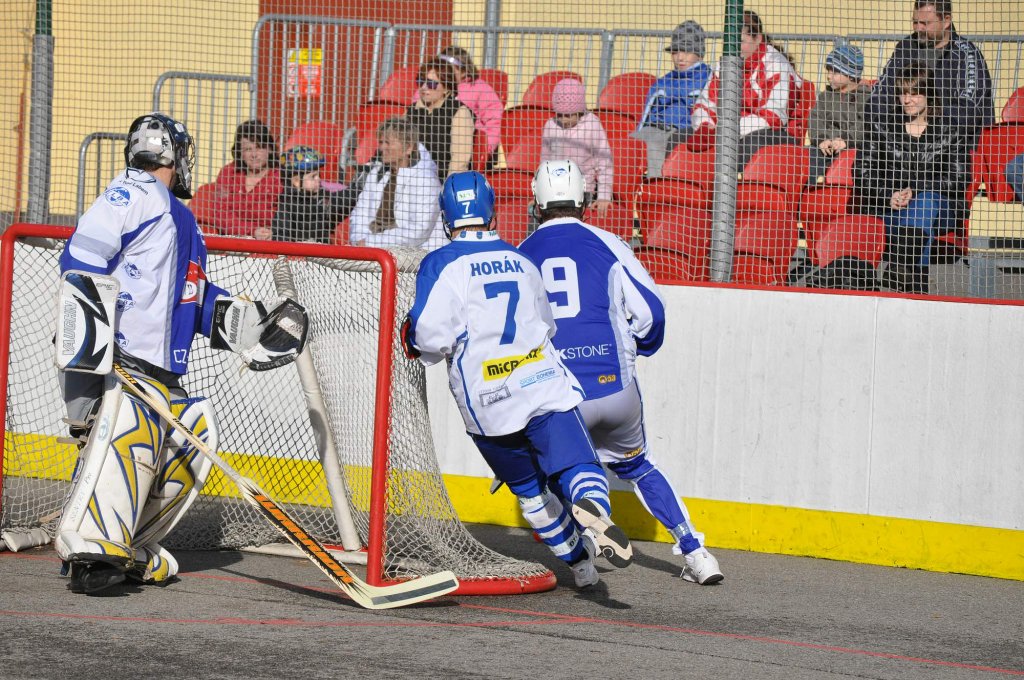 Sobotní výhra 5:1 nestoupla týmu HBT Vlašim do hlavy a v neděli hráči pod vedením trenéra Václava Čičatky pokračovali ve stejném duchu. Vlašimští na svého soupeře vlétli, ale bez výraznějšího ohrožení branky. Hosté byť méně aktivní odpověděli nebezpečněji. Nejprve ještě hosté ztroskotali na Šindelářovi a podruhé se již radovali, ale k jejich smůle zbytečně. Branka nebyla uznána pro hru vysokou holí při dorážce míčku do sítě.