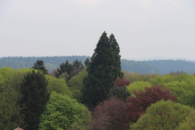 Dva majestátní sekvoje, unikát v České republice, v zahradě zámku Chlouba Ratměřic.