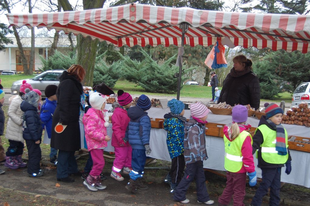 Vánoční atmosféru dokreslí koledy v podání dětí pěveckého sboru ZŠ Jiráskova.